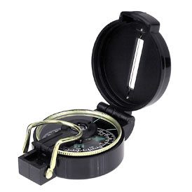 Lensatic These sighting compasses include a protective cover with rotating dial and a dampened vial surrounding the compass disk. |
